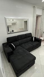 Salve vendo Divano con sceslong a sinistra come in foto e vano contenitore per tutta la lunghezza della seduta, il divano diventa anche letto matrimoniale, i 3 poggiatesta sono reclinabili in varie posizioni in base alle vostre esigenze, di colore nero, tessuto antimacchia ed idrorepellente, semplice da pulire basta anche solo acqua. Misura 255cm circa di larghezza totale, mentre la profondità sceslong 178cm, e la profondità delle due sedute 105cm.