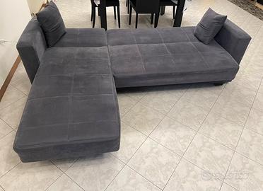 Divano letto contenitore, comodo per conservare coperte/cuscini/ o altro…Colore girgio fumo, con piccoli segni di usura visibili già in foto. Misure circa H 0,80 x L 2,30