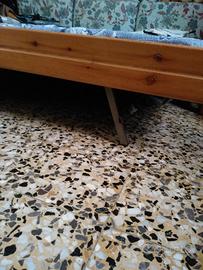 ampio divano letto tre posti, trabacca in legno e cassettone in basso apribile con letto compreso di rete e materasso. il divano è lungo 2 m, altro 70 cm e largo 90 cm. tutto in perfette condizioni