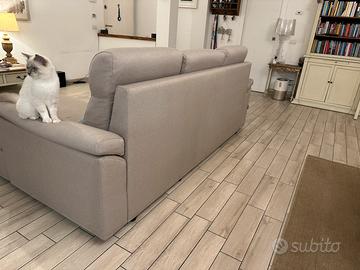 Vendesi divano apribile/letto, comodo, in tessuto interamente sfoderabile e lavabile. Condizioni ottime, come nuovo. Dimensioni 230 L x 90.155 (chaise longue) P x 82.100 (cuscini a spalliera) H.