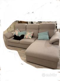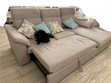 Vendesi divano apribile/letto, comodo, in tessuto interamente sfoderabile e lavabile. Condizioni ottime, come nuovo. Dimensioni 230 L x 90-155 (chaise longue) P x 82-100 (cuscini a spalliera) H.