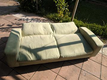 Nota: Sul retro del divano sono presenti alcune macchie nere (vedi foto), che non compromettono funzionalità e comodità.