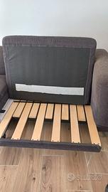 A causa trasloco in casa più piccola, vendo questo solido e robusto divano di design Ikea, 3 posti, con fodera di velluto bouclé color marrone caffè, tutta sfoderabile e lavabile, lunghezza totale 240 cm, profondità 90 cm e altezza 73 cm, con una seduta molto ampia e comoda di lunghezza 200 cm (per il letto singolo), e doghe allungabili per creare il letto matrimoniale. Il divano è tutto scomponibile per il trasporto. Prelievo al domicilio e trasporto sono a cura dell'acquirente (occorre comunque un furgone).