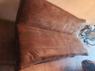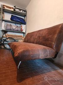 Divano di design in camoscio sintetico color testa di moro. Zampe tonde cromate. Schienale ribaltabile ad uso letto (dimensioni alla francese).