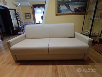 Per cambio arredamento VENDO divano letto similpelle colore beige chiaro. Largo 190 cm e profondo 93 cm. Materasso una piazza e mezzo da 140x190 cm incluso. Si apre e richiude con assoluta facilità e senza fatica in 2 secondi. Tenuto in condizioni eccellenti pari al nuovo e poco utilizzato. Divano marca DOIMO, primaria marca di arredamento e non da discount! Nelle immediate vicinanze ci si può eventualmente accordare per il trasporto.