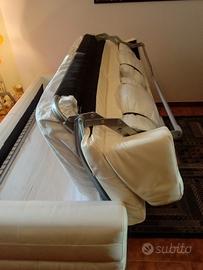 divano Natuzzi Tranquillo 3 posti in pelle e letto matrimoniale con materasso e vano cuscini facile da aprire. Nella parte esterna presenta graffiature del gatto. Divano di del 2022 pagato €1.600 con polizza Kasko x 5 anni