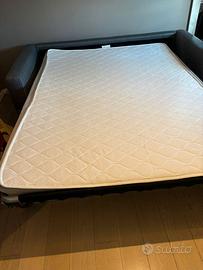 Divano lineare in tessuto grigio. Apribile con materasso incluso. Usato poco. Condizioni ottimali. Dimensioni: Lunghezza 191cm Profondità 91 cm Disponibile da subito
