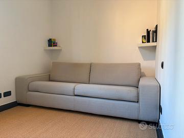 Divano letto Divanidea, struttura in legno, cuscini di seduta e schienale in poliuretano espanso con falda acrilica, tessuto beige completamente sfoderabile.