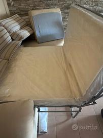 Divano con chaise longue e letto estraibile Dondi in ottime condizioni come nuovo.Il letto estraibile ancora imbustato .Il divano come da foto misura cm 2,59 e cm e chaise longue cm 1.15.Seduta e braccioli in alcantara beige e schienale in tessuto beige e marrone.