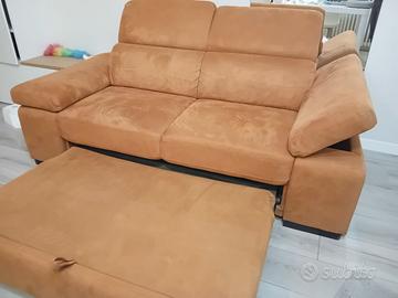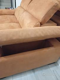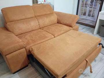 Vendo divano dotato di estraibile color zucca, come nuovo, Dondi Salotti, braccioli contenitori, Misure : Prof cm 102 + 70 cm di estraibile tot 172 cm Altezza 95 cm Larghezza 195 cm