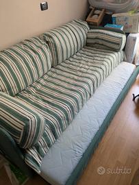 divano letto doppio sfoderabile completo di cuscini e copriletto e materassi (un po' macchiati) e reti a doghe.