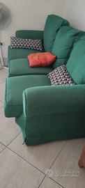 Regalo divano letto verde in tessuto, completo di rete e meccanismo perfettamente funzionante.