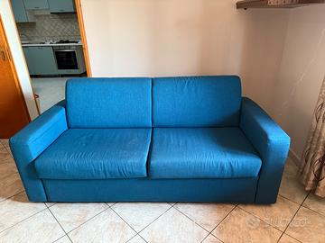 Vendo divano letto 2 posti color petrolio, comodo e in buone condizioni generali. Ideale per soggiorno, casa vacanze o camera ospiti. Presenta solo alcuni piccoli graffi laterali dovuti ai gatti, poco visibili e non ne compromettono l’uso.
