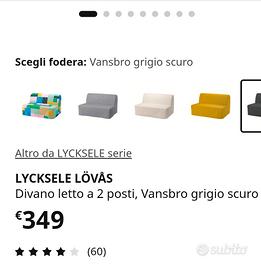 Per inutilizzo svendo splendido divano letto, prezzo Ikea dai 299 ai 349 euro. Usato 2 volte. Adatto per seconde case, camere degli ospiti, taverne o se si vuole un divano funzionale ed essenziale da trasformare in letto. Le misure sono nelle fotografie. Questo divano si trasforma velocemente e semplicemente in un letto a due piazze. È facile da pulire grazie alle fodere, asportabili e lavabili, del materasso e del divano stesso. Scegliendo diverse fodere, puoi rinnovare facilmente il divano e la stanza.