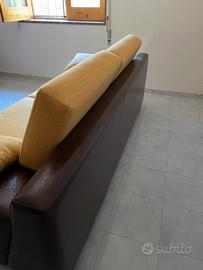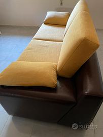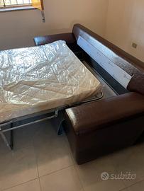 Divano letto pelle e tessuto. Ottima struttura, cuscineria etraibile in tessuto, si puo rivestire anche in altre tonalitá. Materasso una pizza e mezza. Rete molto resistente.