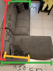 Divano letto e contenitore,con due cuscini, due anni di vita, colore grigio. Le misure sono in foto. smontaggio e trasporto a carico dell' acquirente. per qualsiasi info non esitate a contattarmi