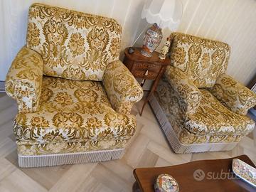 Vendo divano letto tre posti e due poltrone, rivestiti in prestigioso broccato. Ottime condizioni