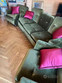Divano letto con due poltrone, in velluto