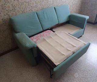 Vendo divano 3 posti verde salvia, che all'occorrenza si sviluppa con 2 letti singoli a 190 €. Misure lung. 190 x prof. 85 x alt. 90 Mobile soggiorno con due letti singoli a scomparsa a 210 €. Misure lung. 4 mt. x prof. 50 x alt. 210
