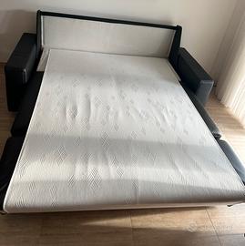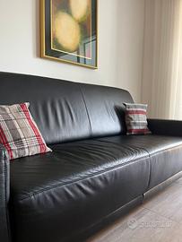 Divano letto e poltrona in pelle nera (set)