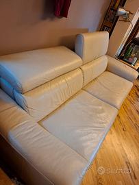 Divano letto in pelle quattro posti, contiene ampio letto matrimoniale con materasso 12cm. Poggiatesta regolabile in varie posizioni. Piedini in acciaio. Misure 236x103 Pouf contenitore abbinato, misure 112x65 Acquistati nel 2021