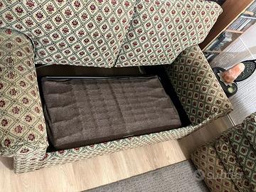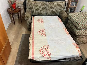 Vendo divano letto 2 posti con rete elettrosaldata e materasso mai usata, cuscini con imbottitura 100% piuma d'oca completamente sfoderabile e pouf 60x60 con ruote anch'esso sfoderabile in piuma d'oca.