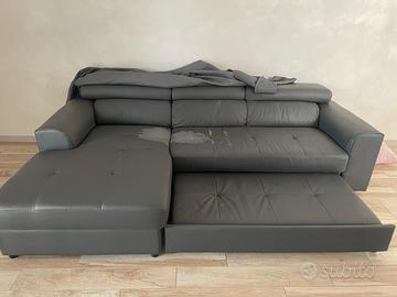Vendo divano letto in ecopelle con penisola (come si vede in foto rovinato solo ecopelle,imbottitura sedute e schienali ok)