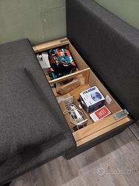 Divano letto estendibile con contenitore casettone. Vendo causa trasloco. Il divano è praticamente nuovo, usato pochissime volte acquistato in un negozio svizzero. Prezzo non trattabile, astenersi perditempo o indecisi.