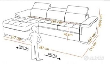 Divano letto estraibile con chaise longue e regolazione poggiatesta. MAI UTILIZZATO.