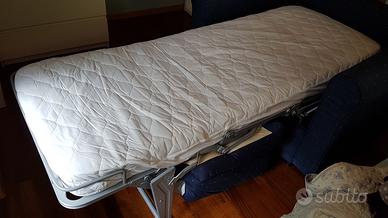 Misure divano: cm 130 larghezza, 92 di lunghezza,90 altezza (retro). Seduta utile cm 90*55; letto singolo aperto cm 90*180, completo di materasso.
