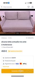 Vendo divano letto usato pochissimo adatto per camerette, vendo al solo prezzo di 100€ per motivi di trasloco.