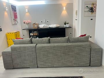 Divano letto in tessuto mélange grigio 250 x 100 di profondità e 145 nella parte allungata; altezza 63. Solo ritiro a mano, zona Ferrara