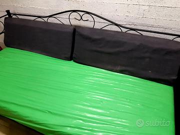 letto o divano in ferro battuto utilizzato come pie de terre per la nonna