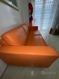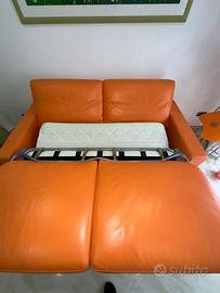 Divano letto FRAU in vera pelle color mandarino