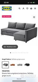 Vendo divano letto ikea con vano contenitore e cassettono estraibile che lo rende un comodo letto matrimoniale. È in buonissime condizioni, segnalo piccolo foro in fondo a sinistra come mostrato in foto . Colore grigio scuro denin. Smontaggio e ritiro a carico dell’acquirente su Roma, 00153