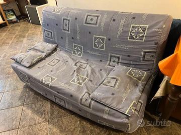 Divano futon a tre posti completamente sfoderabile. Si trasforma con facilità in letto matrimoniale, in buone condizioni.