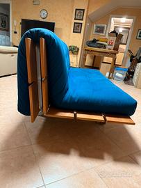 Vendo Divano letto di design comprato da Ometto arredamenti seduta 3 posti comodi estensibile con un semplice click con materasso futon matrimoniale cm 185x160 spessore cm 15 estraibile su struttura in doghe grandi legno di ciliegio e acciaio.