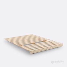 Divano letto matrimoniale stile futon ad incastro in legno naturale con doppio materasso sfoderabile in cotone appena lavato e disinfettato con trattamento ad ozono.