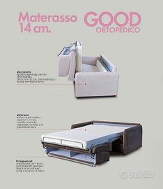 Il divano letto GRAFI è equipaggiato con il materasso GOOD ORTOPEDICO h. 14 cm.