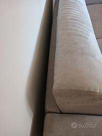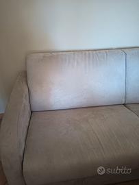 misure 205 cm lunghezza, 95 cm profondità, 85 cm altezza. Alcantara grigio chiaro. divano letto Chateau d'ax. Qualche macchia puntiforme e scuciture nella fodera interna. prezzo trattabile