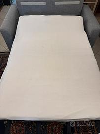 Divano letto una piazza e mezzo in tessuto grigio sfoderabile. Misure divano chiuso in cm 167 lunghezza x 90 larghezza x 73 altezza 55 profondità seduta Misure divano aperto in cm 235 lunghezza x 118 larghezza Misure materasso 173x118x 10