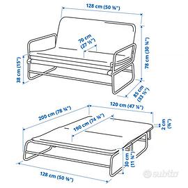 Vendo divano letto Hammarn Ikea usato pochissimo e semi nuovo, completamente integro nella sua struttura. Offro copri materassino fatto fare su misura con fantasia come da foto.