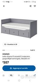 Vendo letto/divano ikea hemnes grigio, comprensivo di 2 materassi ikea. comprato circa 1 anno fa e usato pochissimo. pari al nuovo. già smontato