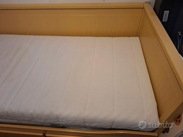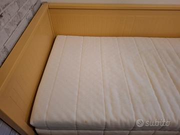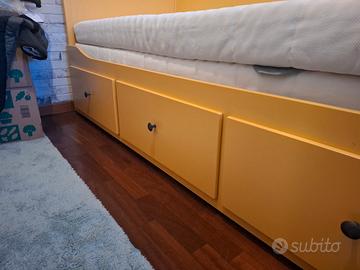 Cedo, per trasloco, letto Ikea HEMNES di colore giallo, già montato comprensivo di due materassi bianchi (ACQUISTATI SEPARATAMENTE). Dotato di 3 cassetti. Dimensioni generiche 80x200. Ritiro a carico dell'acquirente.