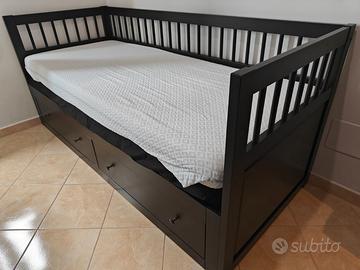 Vendo divano letto modello Hemnes, nero, utilizzabile sia come singolo che come matrimoniale facendo scorrere la rete. Dotato di due materassi singoli che si affiancano nella configurazione matrimoniale.