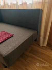 Divano facile da trasformare in un pratico letto ed è anche presente un vano contenitore sotto la seduta. Dotato di 2 cuscini dello stesso tessuto.