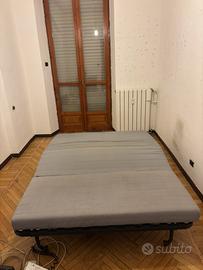 Vendo divano letto di Ikea, 1 anno di utilizzo, vendo per trasloco. Come nuovo e in ottime condizioni in tutto, l'unico problema che ha sono delle leggere macchie sul coprimaterasso (lavabili). Facilente pieghevole e con ruote per spostamenti rapidi. Vendo completo di struttura, rete doghe, materasso