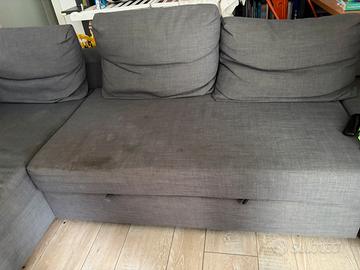 Divano-letto Ikea con contenitore colore grigio Il divano è stato acquistato circa 10 anni fa la stoffa delle sedute è macchiata ma il divano è sempre funzionale e lo è anche l’apertura del letto.