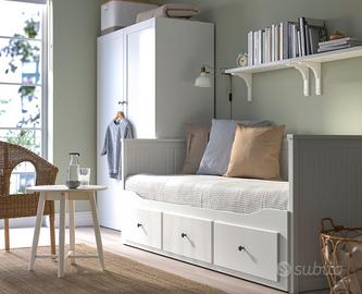 Vendo divano letto ikea Hemnes con 3 cassetti due materassi color bianco mai utilizzato. La configuarzione in foto nuova da ikea costa 467€. Nuovo di pacco