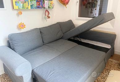 Vendesi divano letto Ikea con chaise-longue e contenitore in ottime condizioni. Colore grigio scuro. Interamente sfoderabile e lavabile in lavatrice.
